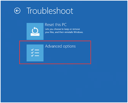 4. Once you are in the advanced boot menu, click advanced repair options.