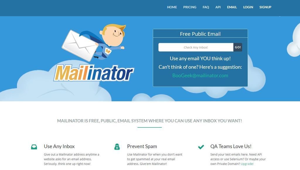 Another one, providing disposable e-mail address making similar to GETAIRMAIL. You can make any random email id with the @mailinator.com at the end of it, and it exists. It completely deserves its second position on Websites like Getairmail list.