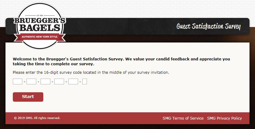 - Enter the official Bruegger’s Survey website by click here www.brueggerssurvey.com.