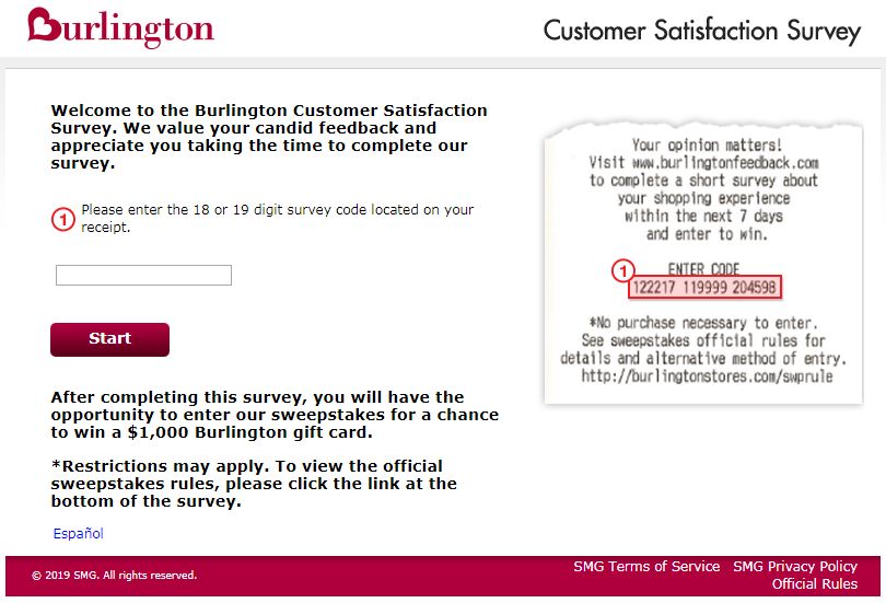- A Burlington purchase receipt is required with a survey code mention on it.