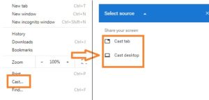 - From the menu section of the Chrome Browser you will find the “Cast” option from where you can start Chromecast. But you need to ensure that the device has plugins all the equipments including the Chromecast Device