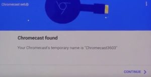- After it finds the nearest Chromecast device, you will be notified and you need to click on “Continue” button.