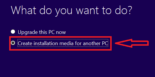 - Now run the download tool and select the “Create Installation Media for Another PC” and click “Next”