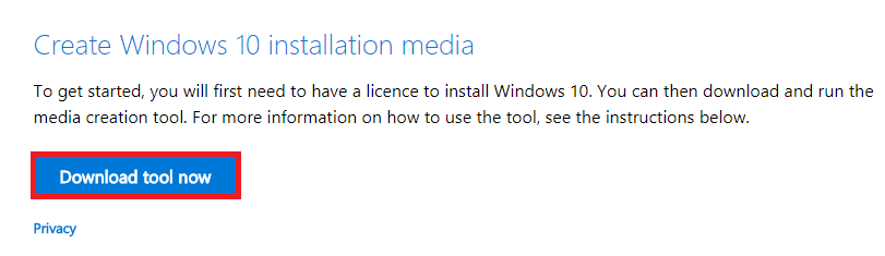 - Visit the Windows 10 Download Page and download the tool to get the latest media creation tool