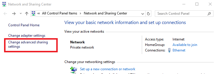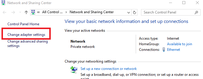 Step 4- on the left-hand side of the window look for the change adapter settings option.