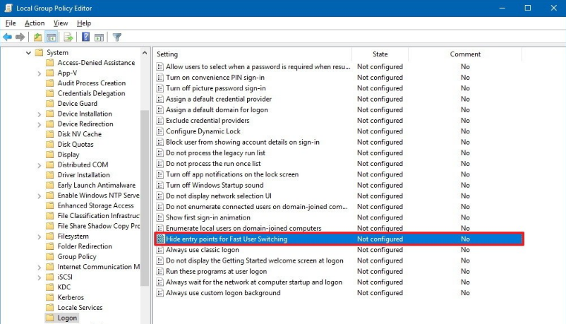 This is the simplest method in Windows 10 disables fast user switching. We use the local Group Policy Editor. To that follow the given procedure.