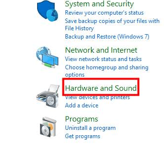 2) In Control Panel, click on view by Category > Hardware and Sound.