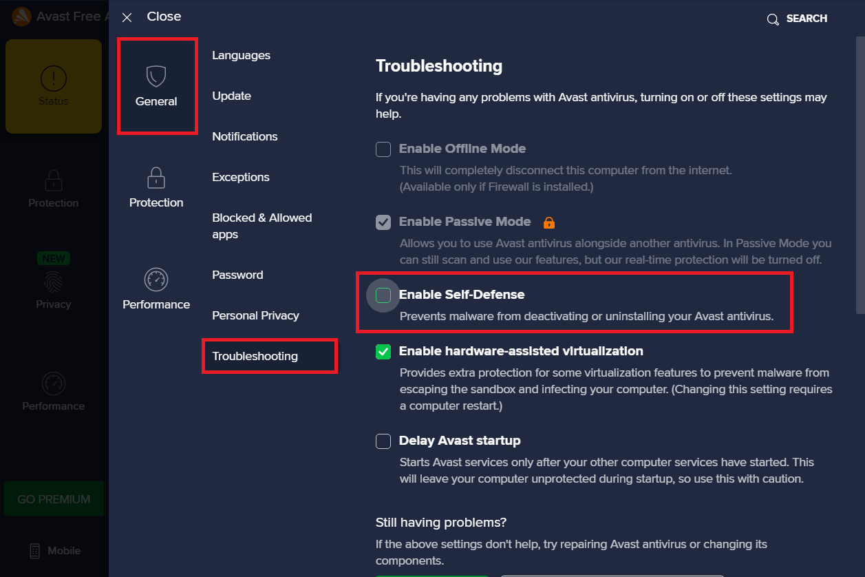 Since I’m using Avast, I’ll show you how to do it for Avast antivirus. You can usually find the option for your antivirus under the settings tab.