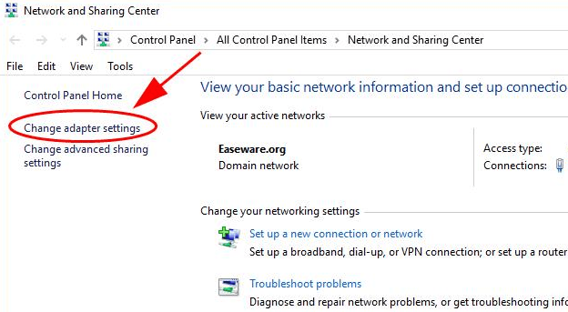 2 ) Now you have to choose “Change adapter settings” from the left side of the opened window.