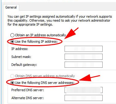 - Manually assigning IP Address and DNS Server Address.