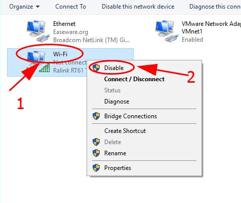 3 ) According to your in use connection name you have to right click on it and then you have to select Disable.