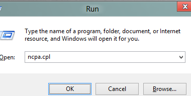 1 ) Open Network Connections using Run Menu. Type Windows + R to open Run Dialog Box. Now type ncpa.cpl in run menu.