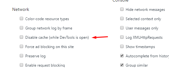 Scroll down and find Disable cache > Check mark it. Reload the page.