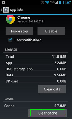 - Click the “Clear Cache” option and finally on “Clear Data”