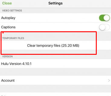3. Select Clear Cache. Then reopen Hulu App and then see if this is working or not.