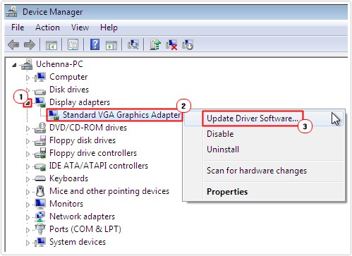 Step 3: After enabling your Graphics Card again, you have to the right click on the graphic card and then select the Update Driver Software.