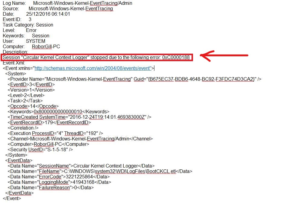 Why Do I Get Session “Circular Kernel Context Logger” Stopped Due To The Following Error: 0xc0000188” Error?