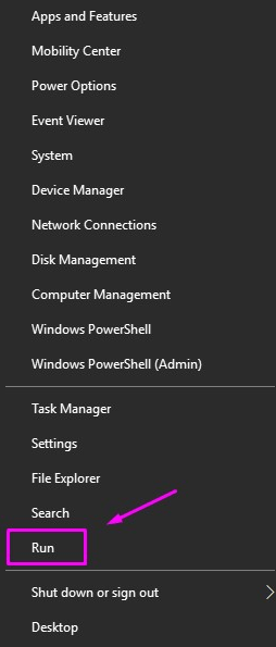 Step 1: First of all you have to right-click on the Start button and then you have to select the Run option.