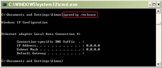 ipconfig /release