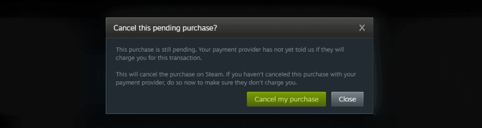 It is quite possible that the payment method you’re using is currently unavailable or is facing some issue. When Steam is not able to process the transaction and confirm the payment, it can give you this error screen.