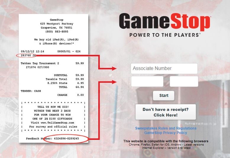 - Click here: www.tellgamestop.com to enter the official GameStop Survey website.