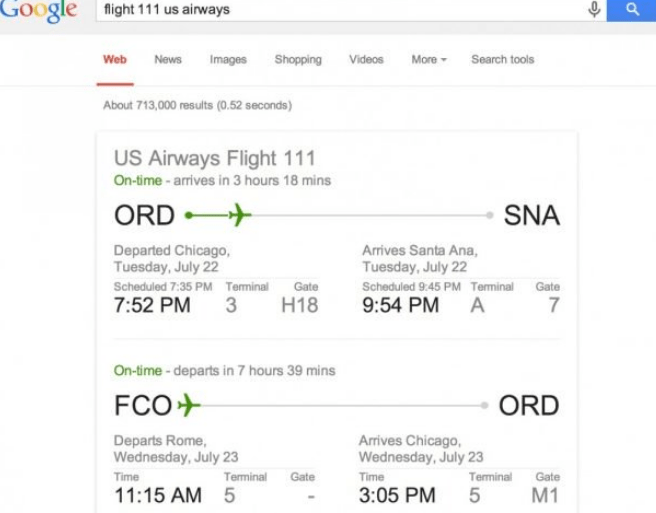 12.  You can even check on Google the arrival and departure time of a flight. Type “Flight number Location airways”. For example, type flight 111 us airways.