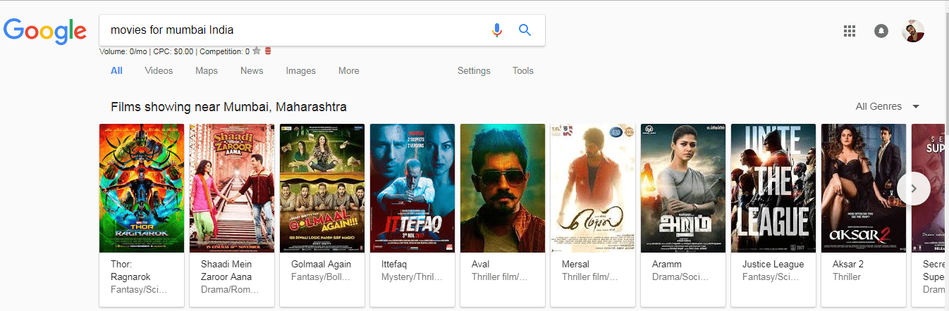 15. It is another Google tricks using which you can see which films are showing near your location on theatre.
