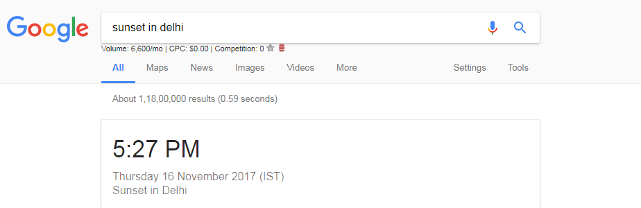 7. If you are on a tour somewhere in the globe and wish to see the sunrise and sunset which is romantic then Google will help you. Just open Google and type sunrise in Germany or Sunset in Germany, it will show the exact time of sunrise and sunset in that place.