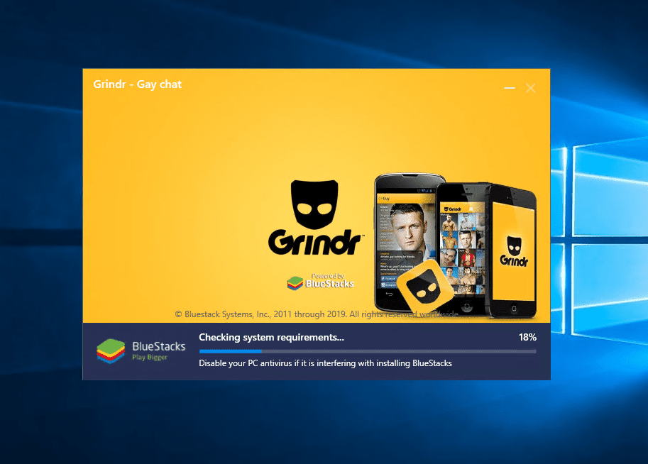 - Now Grindr is ready to use on your PC through the BlueStacks available on the home screen of your PC.