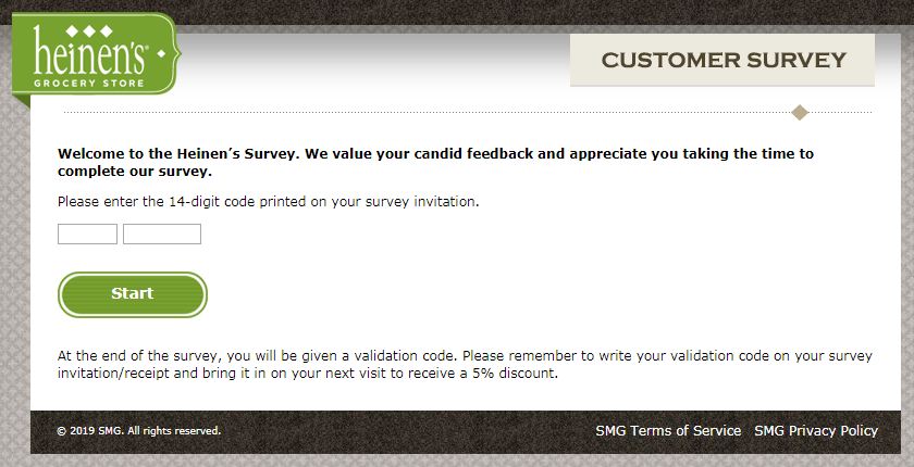 Check out the below mention steps to complete Heinen’s Survey. Follow them as mentioned and after you complete it you will get your Validation Code.