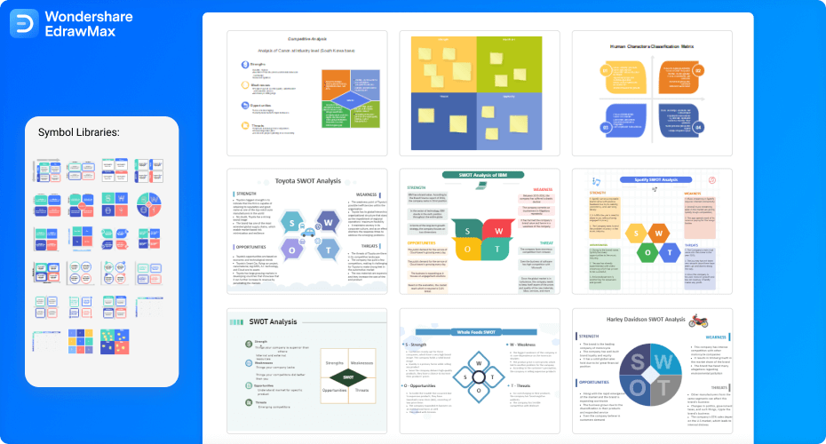 EdrawMax is a powerful SWOT analysis software that offers features that none of its competitors offers at any price range. Some of the astounding features that make EdrawMax the best free personal SWOT analysis software are: