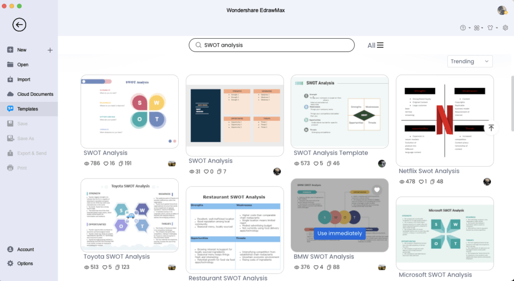 EdrawMax is a powerful SWOT analysis software that offers features that none of its competitors offers at any price range. Some of the astounding features that make EdrawMax the best free personal SWOT analysis software are: