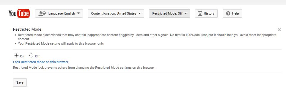 - At the bottom of that page, you should find a tab “Restricted Mode”.