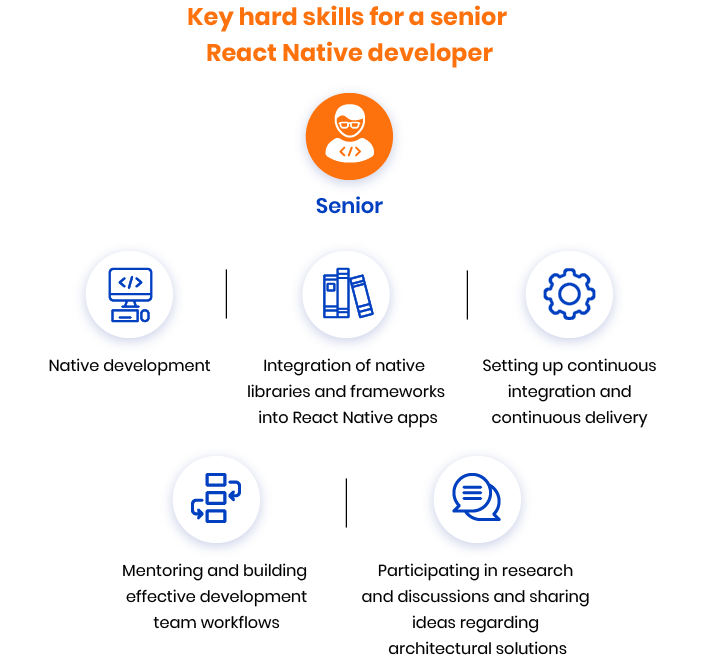- Hiring Senior experts mean having project leaders on your team. They have been in the React world for more than five years and speak English perfectly. The highest professional rank is also about being familiar with Vue, Express.js, or other environments and toolsets apart from React.
