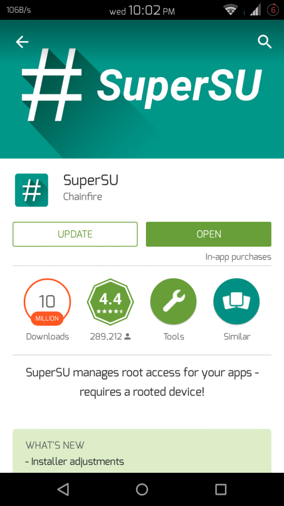 Step 1: Open Google Play Store and search for SuperSU. Download the application and install it on your device.