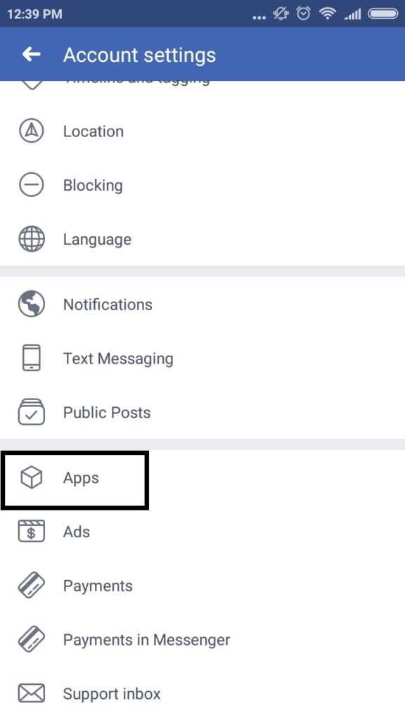 Now, select “Apps” from the list under Account Settings bar.