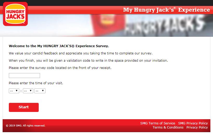 - A Hungry Jack’s purchase receipt with a survey code on it is required.