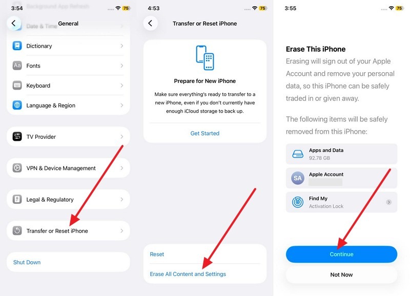Step 1. If your iPhone is already set up, erase it first by going to Settings > General > Transfer or Reset iPhone > Erase All Content and Settings.