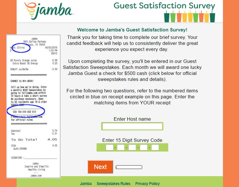 Check out the below mention step by step procedure to complete the Tell Jamba Survey. Follow the steps and complete the procedure to get an entry into the sweepstakes.