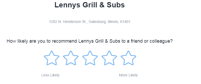 - Answer these questions – “How likely are you to recommend Lennys Grill & Subs to a friend or colleague?