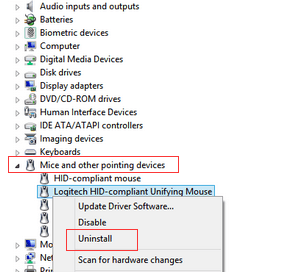 Expand the category > Find Logitech mouse. If you see a yellow mark then, there is a problem with the driver.