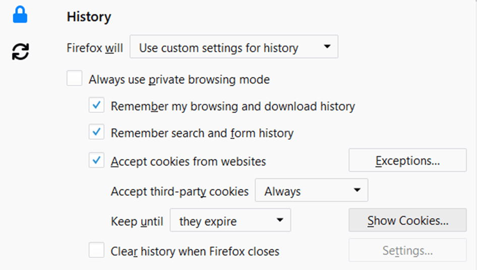 - Now Click on the Remember history drop-down menu and select Use custom settings for history option.