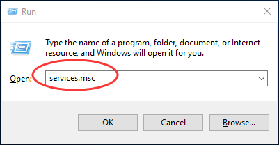 Step 1: Windows key + R key > Open Run > type services.msc in the box and press Enter to open Service window.