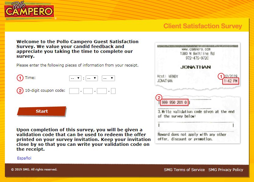 Check out the below mention complete procedure to complete the Pollo Campero Survey. Follow the step as mentioned to get your free Validation Code.