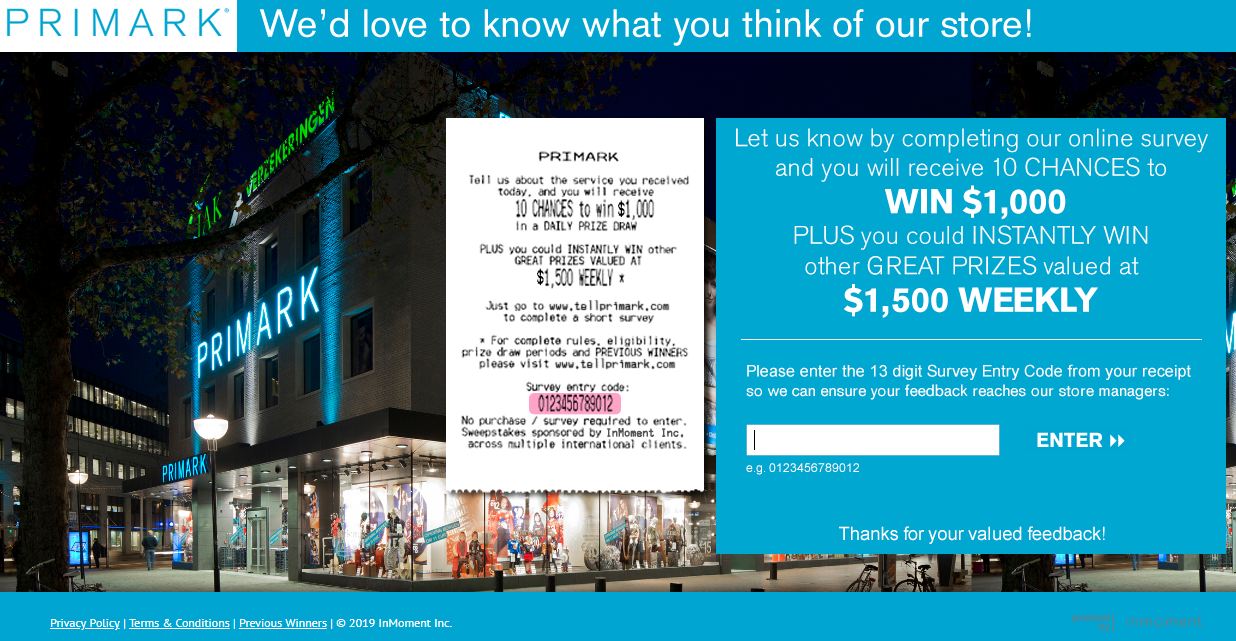 TellPrimark is an official survey started by Primark. Customers get a chance to Win a $1000 or $500 Cash Prize to participate in this Primark Survey.