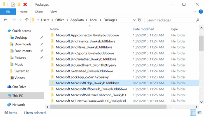- Find Microsoft.MicrosoftEdge_8wekyb3d8bbwe and delete it.
