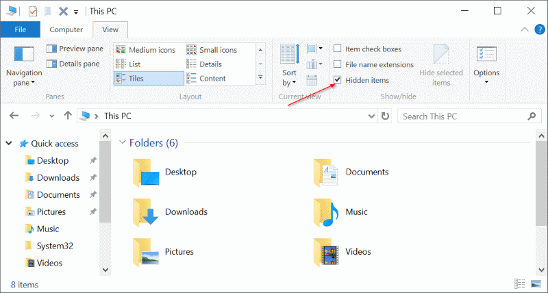 - Close Microsoft Edge browser, if running > Open up File Explorer > Enable hidden files.