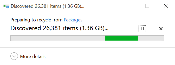 - Windows 10 will take a couple of minutes to delete this folder.