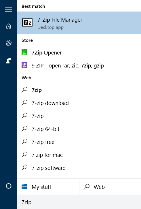 Step 1: Click on the Search bar, next to the Windows icon on the screen. Type 7-Zip and click on the file from the Search results displayed.