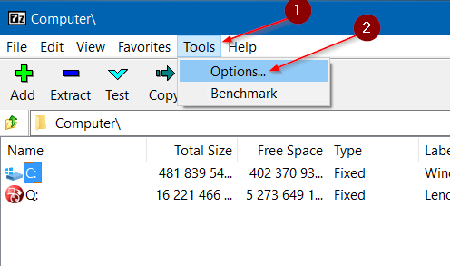Step 3: The options window will open. Click on the 7-Zip tab. There will be a list of Context Menu items.